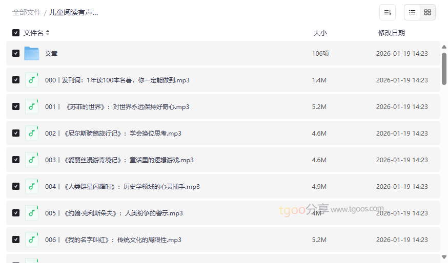 儿童阅读有声读物《百部世界文学经典导读课》资源目录