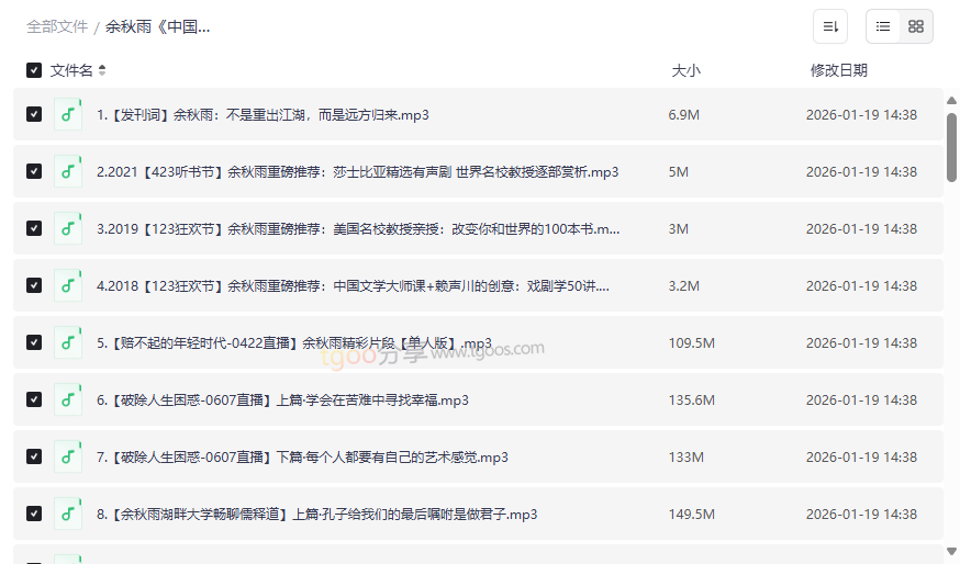 资源地址:《中国文化必修课》余秋雨215讲音频全集网盘资源下载