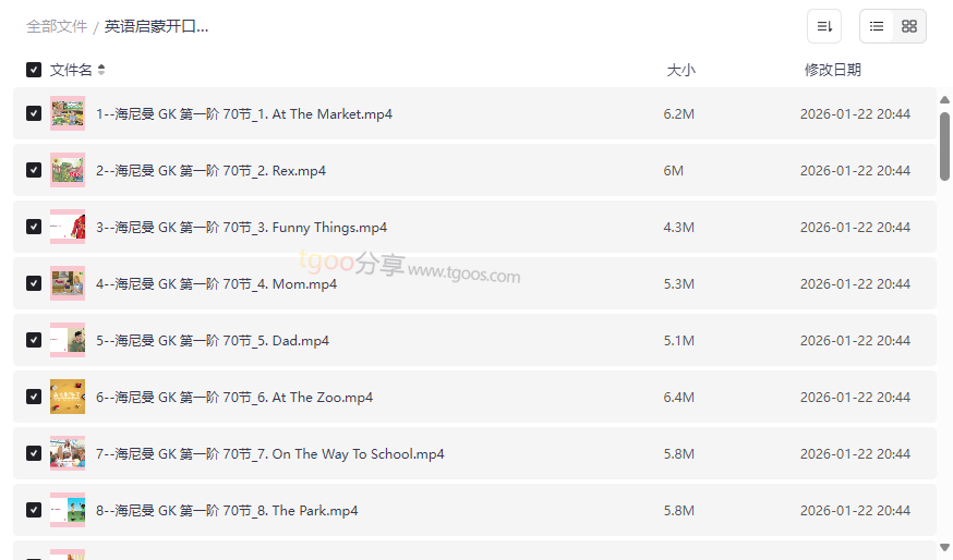 英语启蒙开口神器《海尼曼唱读版动画·GK阶段》资源目录