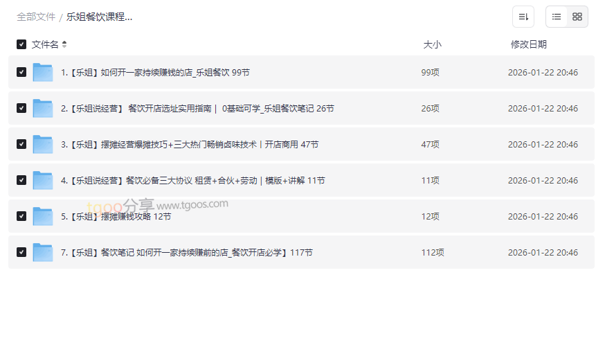 资源地址:《乐姐餐饮课程合集》网盘资源下载:开店选址/摆摊卤味/协议模板全攻略