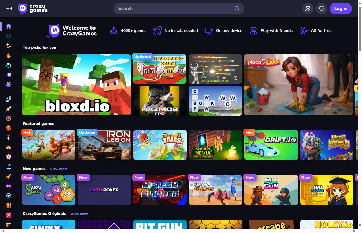 - 高品质游戏筛选:平台对入驻游戏进行严格质量审核,确保游戏画面精美、玩法有趣且运行流畅。相比其他免费游戏网站,CrazyGames更注重游戏品质,为用户提供优质的游戏体验,避免低质量游戏的干扰。