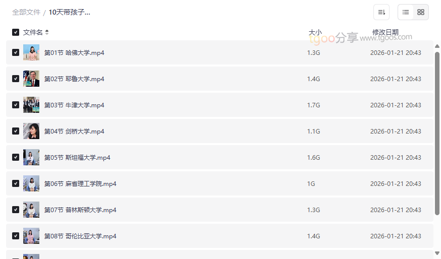 资源地址:《10天带孩子玩转TOP10名校》世界顶尖大学启蒙视频课程网盘下载