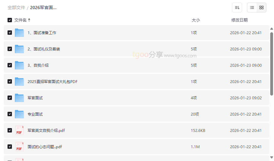 包含最新的2025直招军官面试大礼包PDF军官通用面试题直招军官/军士面试题库等历史真题资料。通过研究历年真题,考生可以准确把握命题趋势、高频考点和评分标准,实现有重点、高效率的备考,让复习事半功倍。