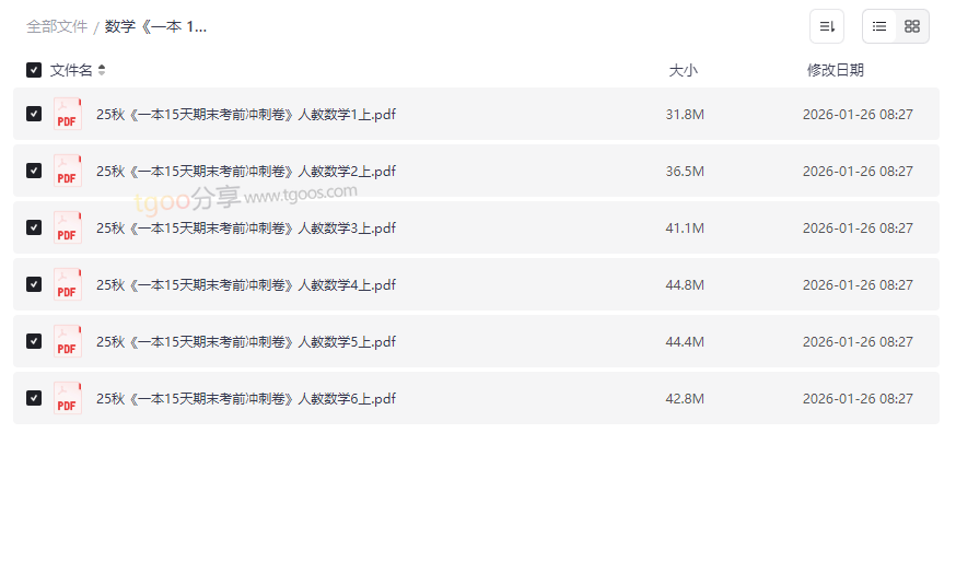 资源地址:《一本 15天期末考前冲刺卷》人教版数学(25秋)1-6年级上册全套PDF网盘下载