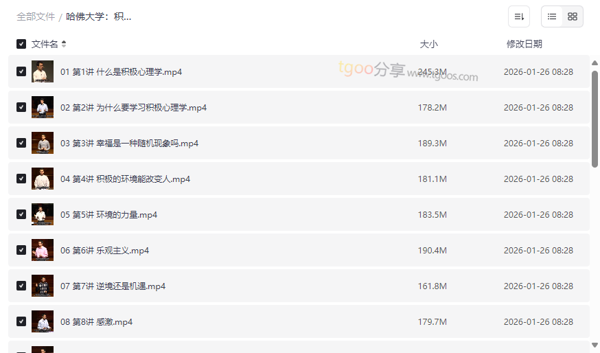 资源地址:哈佛大学积极心理学(幸福课)23讲完整版视频 – 世界名校公开课网盘资源下载
