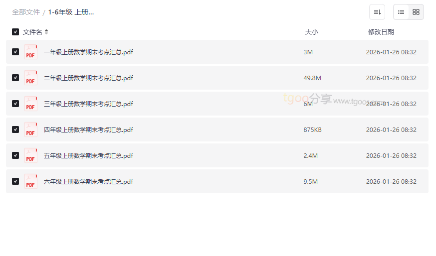1-6年级上册数学期末考点汇总(25秋)资源截图展示