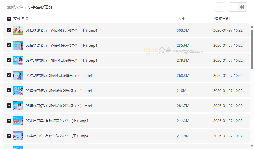 资源地址:《小学生心理能力成长视频课》全套网盘资源下载,培养孩子强大内心