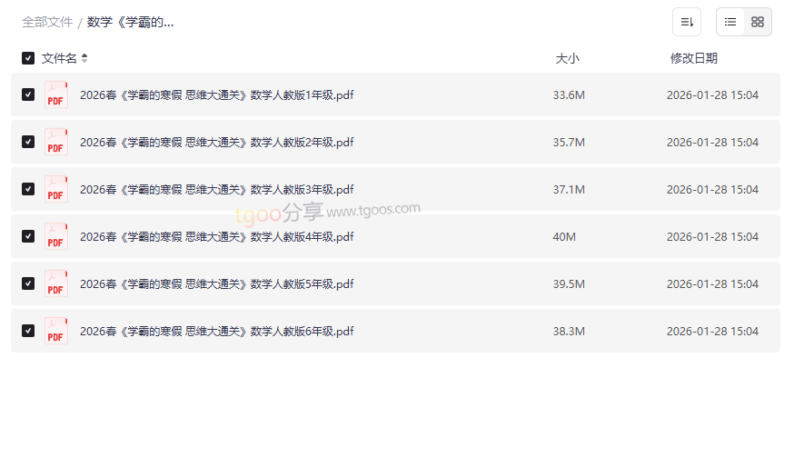 资源地址:《学霸的寒假 思维大通关》人教版2026春季版 小学1-6年级全套数学思维训练PDF下载
