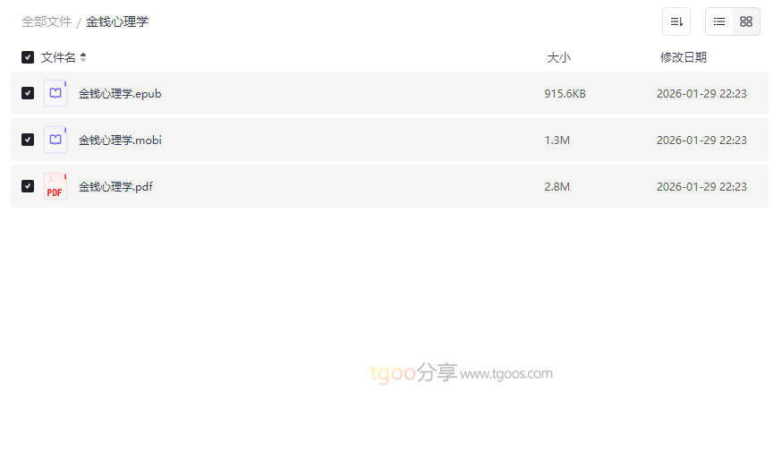 《金钱心理学》是一本深刻探讨金钱与人类行为、情感和决策之间复杂关系的畅销著作。它并非一本枯燥的投资指南,而是从心理学、行为经济学和历史案例的独特视角,揭示了我们与金钱互动时的非理性模式。本资源集合了 EPUB、MOBI、PDF三种主流电子书格式,为读者提供了最便捷、最全面的阅读选择。无论你是想系统学习,还是利用碎片时间在手机或电纸书上阅读,这份资源都能完美适配。它尤其适合: