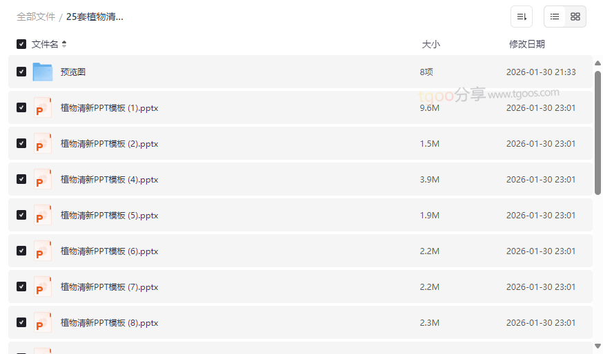 25套植物清新PPT模板资源目录