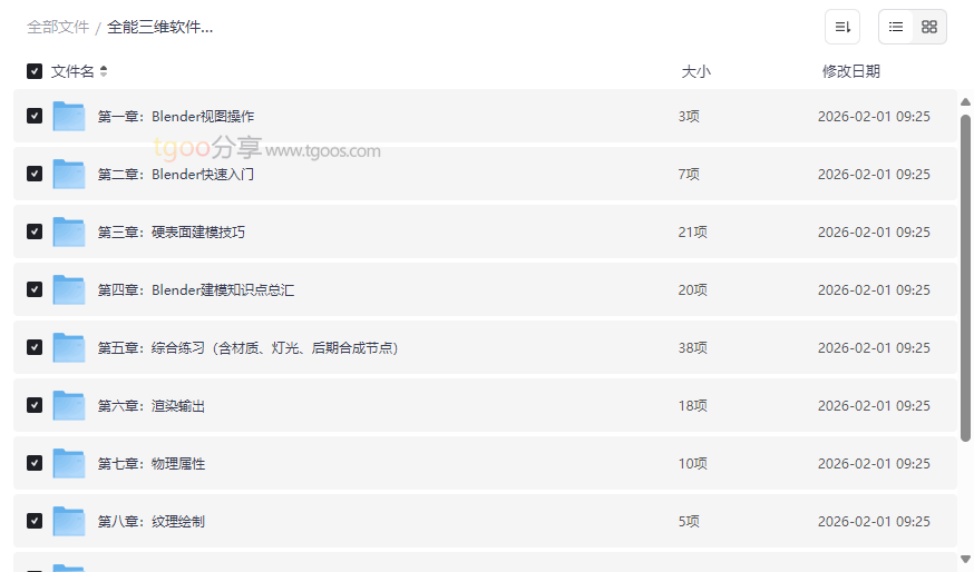 全能三维软件Blender快速入门视频教程资源目录