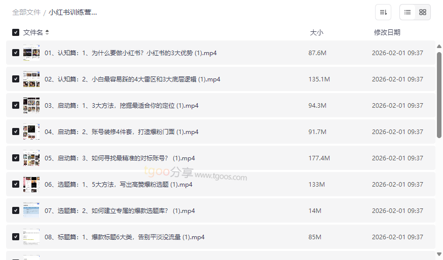 小红书博主变现训练营资源目录