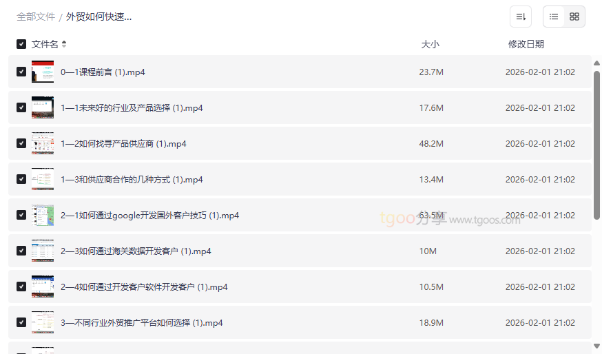 在全球化浪潮和国内市场竞争日益激烈的背景下,越来越多的内贸企业主和管理者将目光投向了广阔的海外市场。然而,从熟悉的国内市场转向陌生的国际贸易,往往面临着产品选择、客户开发、风险规避等一系列从0到1的难题。本套《外贸如何快速0-1认知课》资源,正是为这一关键转型阶段量身打造的系统性指南。课程内容涵盖了 从行业选择、供应链搭建、客户开发技巧、平台推广策略到收款避坑、效率工具 等外贸全链路核心知识,旨在帮助内贸转型者快速构建外贸思维框架,避开常见陷阱,高效开启海外业务。这套高质量网盘资源合集尤其适合:
