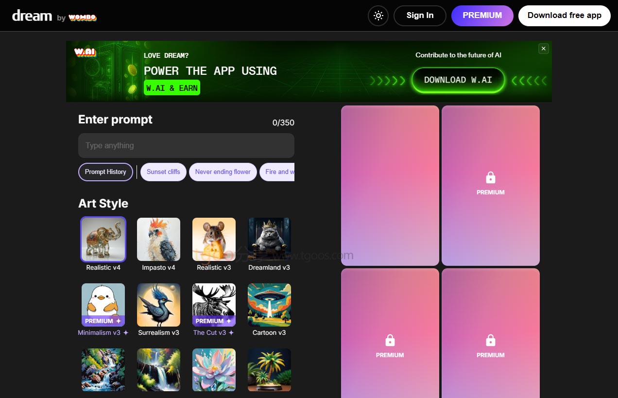 趣站地址:Dream by WOMBO-AI文字转图像艺术创作工具