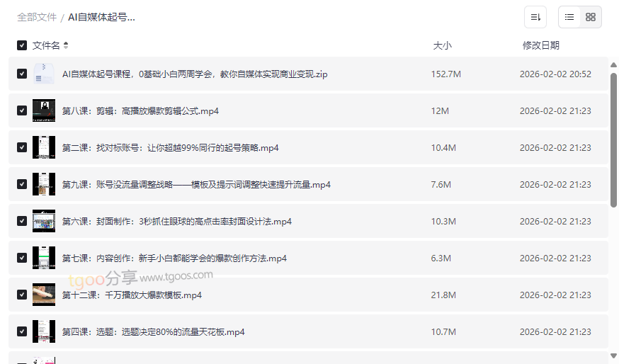 AI自媒体起号课程资源截图展示