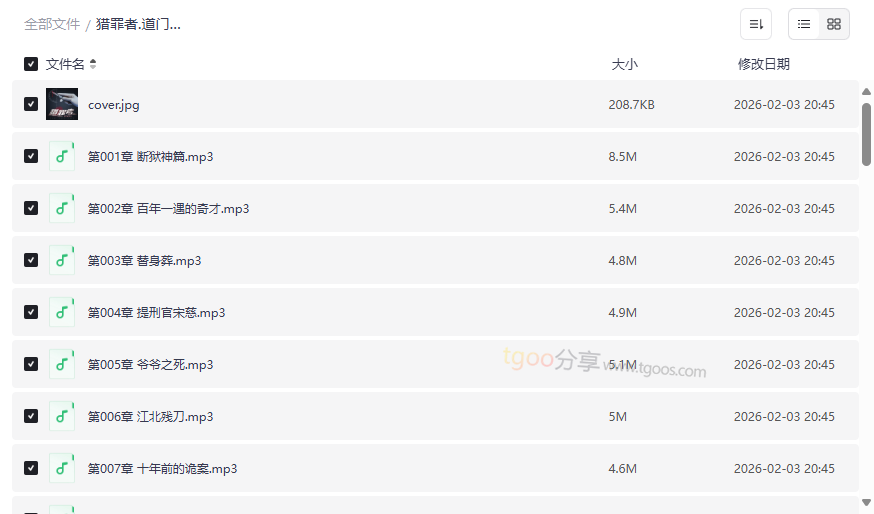 《猎罪者》是知名悬疑作家道门老九创作的现代刑侦推理巨著,融合了法医知识、传统仵作绝学、惊悚悬案与热血探案等多重元素。本资源为2018年由“有声的紫襟”倾情演播的完整MP3音频全集,以其标志性的磁性嗓音和精湛的角色演绎,将文字转化为极具沉浸感的听觉盛宴。这部高质量有声小说不仅是悬疑爱好者的宝藏,更是通勤路上、睡前时光或居家休闲时绝佳的“耳朵伴侣”,适合: