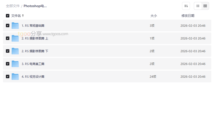 Photoshop电商基础课程资源截图展示