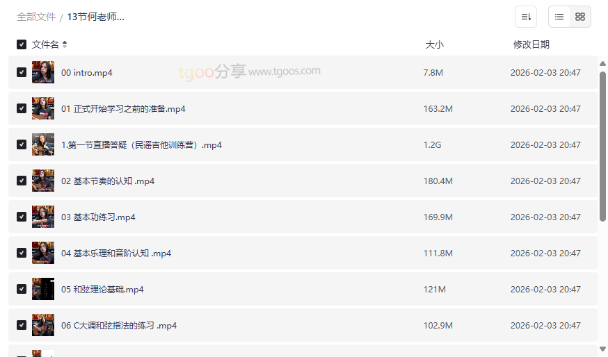 对于渴望掌握民谣吉他弹唱、却苦于无从下手的音乐爱好者而言,一套系统、专业且循序渐进的入门课程至关重要。本资源集合了由何老师精心讲授的 《13节民谣吉他训练营》全套视频课程,内容从零基础认知到实战弹唱,覆盖了 节奏、乐理、音阶、和弦、扫弦及常用技巧 等核心模块。这套课程的价值在于,它并非零散的技巧堆砌,而是一个逻辑清晰、环环相扣的完整学习体系,旨在帮助学员打下坚实的吉他演奏基础,并快速实现自弹自唱的梦想。本资源非常适合:
