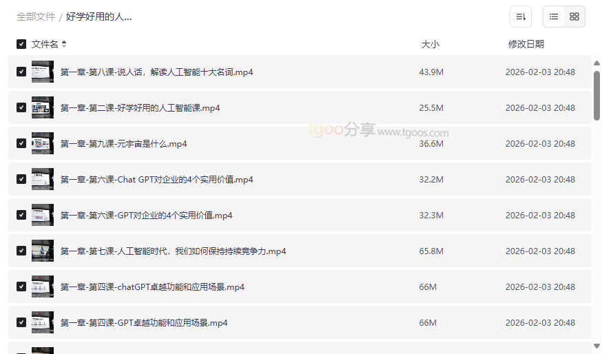 这是课程最具实操价值的核心部分,手把手教学如何从0到1驾驭主流AI工具。内容细致拆解了:- GPT深度应用:分别教授如何用GPT处理文本、表格、制作PPT、编写代码,并拓展至批量生成爆款短视频、优化直播间等高级商业用途。