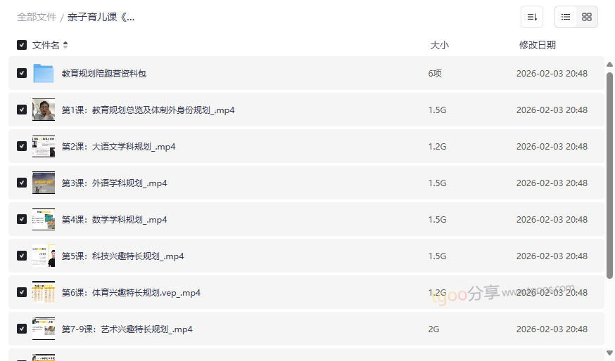 亲子育儿课《阿留教育规划陪跑营》资源目录