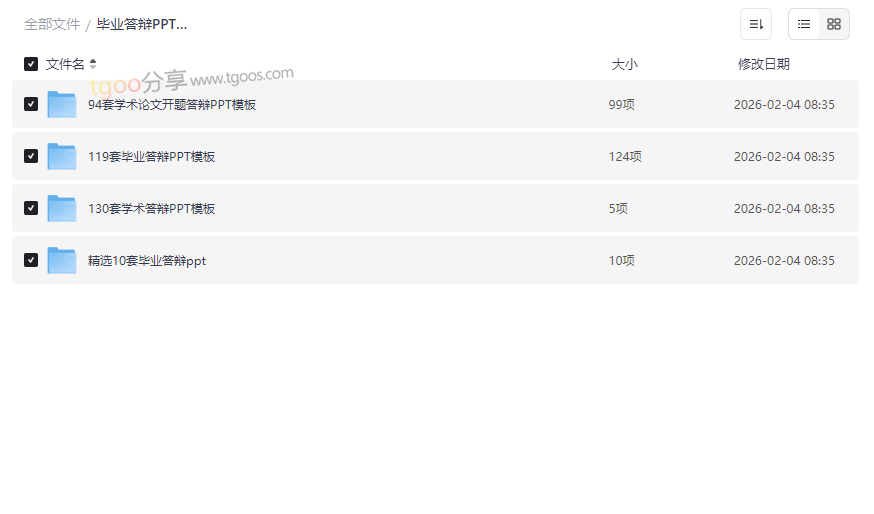 毕业答辩PPT模板资源目录