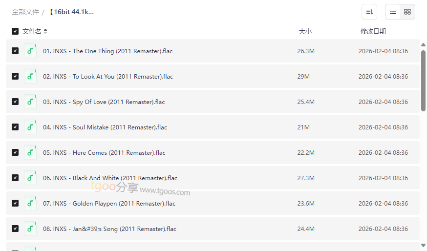 这是本资源的核心,包含了专辑《Shabooh Shoobah》全部10首曲目经过 2011年专业母带重制 的版本。重制过程极大提升了声音的清晰度、分离度和动态,让《The One Thing》、《Don‘t Change》等经典金曲焕发新生,在无损格式下,吉他riff的质感、Michael Hutchence充满磁性的嗓音以及强劲的节奏部分都得以完美再现。 - 珍贵扩展混音与未发行曲目(曲目11-14, 16-18)