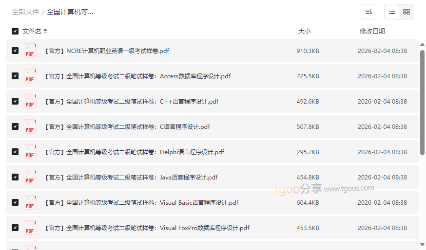 整体亮点:本资源最大的优势在于其官方性与完整性。所有样卷均为PDF格式,清晰易读,省去了考生四处搜寻、资料良莠不齐的烦恼。一站式获取全级别样卷,便于考生纵向了解NCRE全貌,制定长期考证规划。