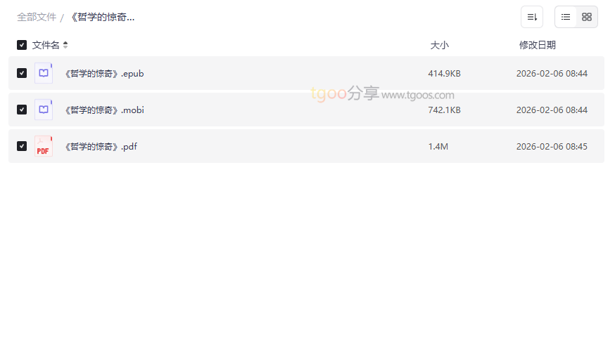 专为亚马逊Kindle设备及APP优化的格式。选择MOBI格式,意味着你可以获得在Kindle上最原生的阅读体验,包括完整的字体支持、目录跳转和笔记标注功能。对于习惯使用Kindle进行深度、护眼阅读的读者来说,这是不可或缺的版本。 - 《哲学的惊奇》.pdf
