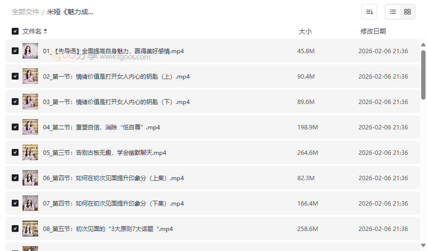 米娅《魅力成长实操课(男生版)》资源目录