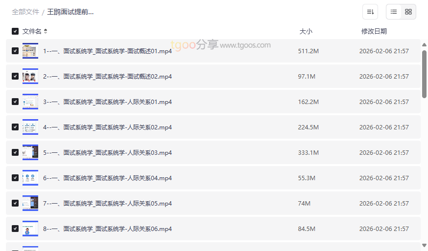 面对竞争激烈的省考与事业单位考试,面试环节往往是决定成败的关键。本套“王鹍面试提前学通用类”资源,正是为有志于公职的考生量身打造的系统性备考利器。资源全面覆盖了结构化面试、无领导小组讨论等主流面试形式,并深度剖析了人际关系、应急应变、计划组织、现象分析、观点启示等核心题型。通过名师王鹍的系统讲解,本资源旨在帮助考生构建清晰的答题逻辑,积累实用的答题素材,克服面试恐惧,实现从“知道”到“会说”再到“说好”的飞跃。这套高质量网盘资源合集尤其适合: