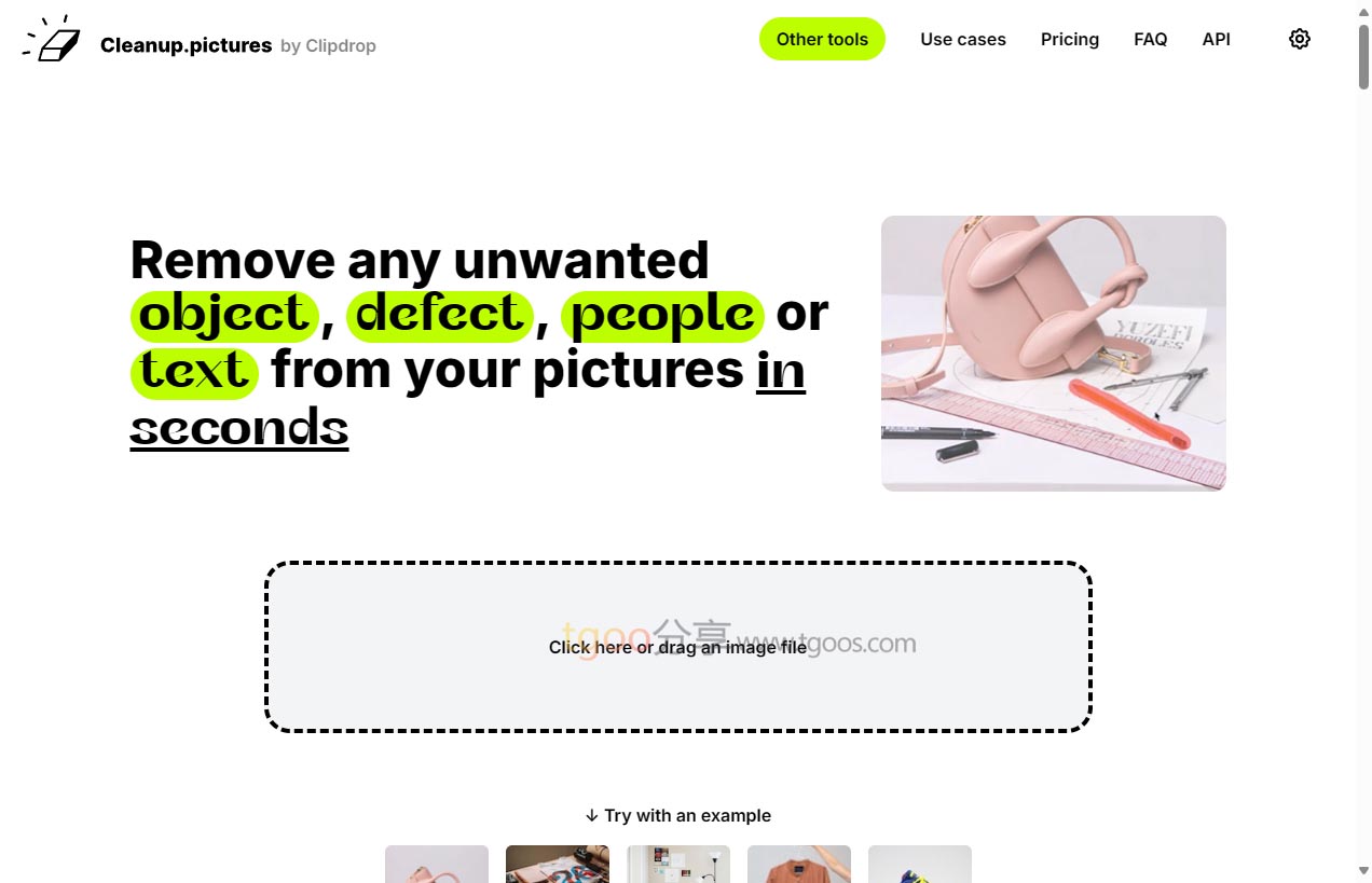 趣站地址:Cleanup.pictures-免费AI图片内容智能移除工具