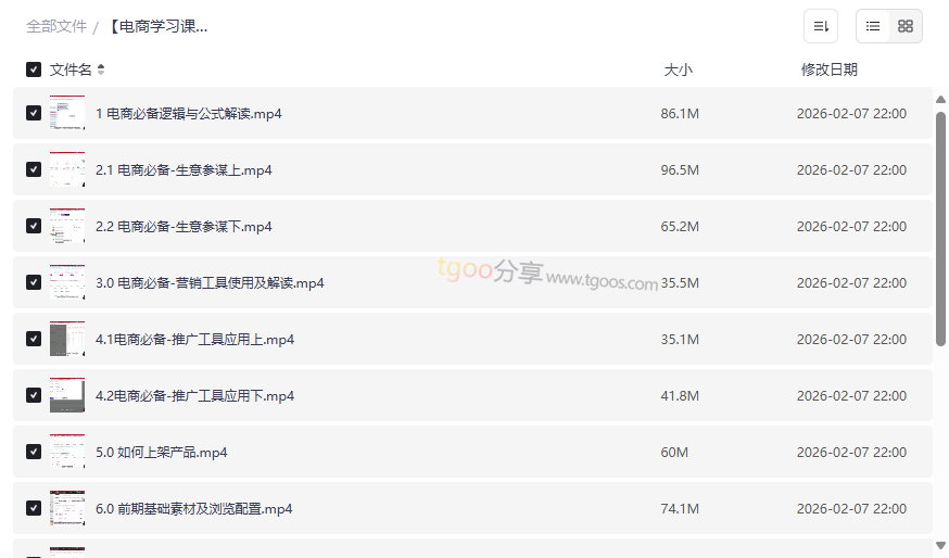 无论你是想开启自己的电商事业,还是希望在职场中提升核心竞争力,这套结构清晰、内容干练的课程都能为你提供一条高效的电商学习路径。