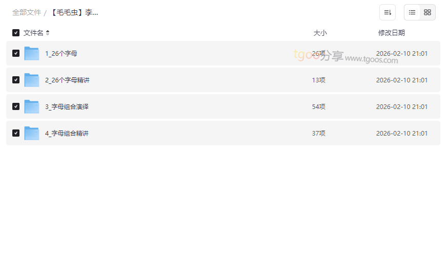 自然拼读是英语学习的基石,掌握它意味着孩子拥有了“见词能读,听音能写”的自主阅读能力。本资源【毛毛虫】李洁老师双外教剧情版自然拼读课程,以其独特的“双外教情景演绎+系统精讲”模式,将枯燥的拼读规则融入生动有趣的剧情中,打造了一门孩子爱看、爱学、效果显著的高质量英语启蒙课程。课程体系完整,从26个字母到复杂的字母组合,循序渐进,通过趣味视频和深度讲解,全方位构建孩子的英语音素意识和拼读技能。这套网盘资源合集非常适合: