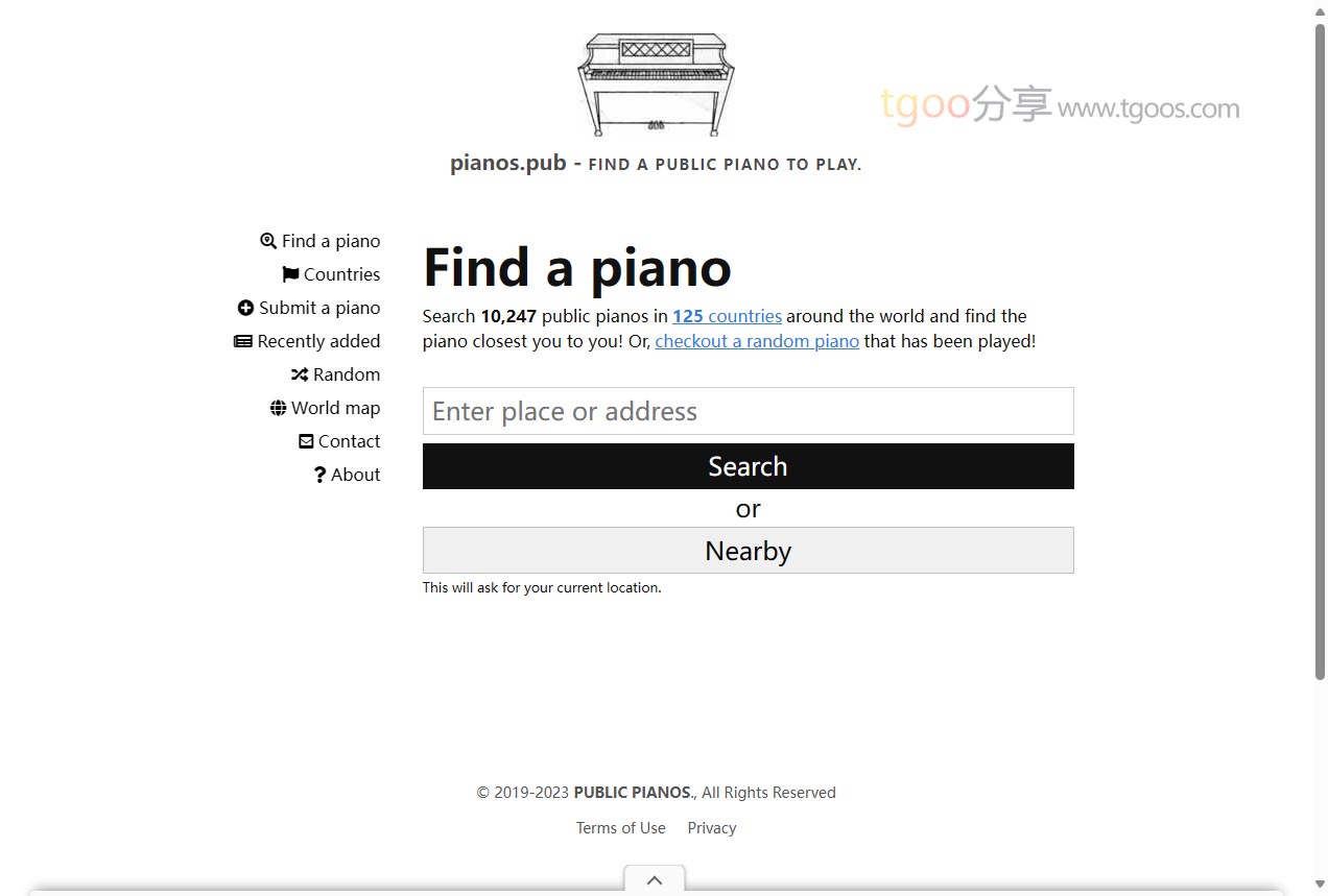趣站地址:Pianos for Travelers-全球公共钢琴位置查询