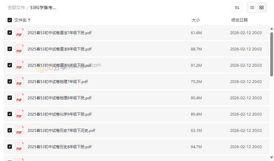 53科学备考《初中各科模拟试卷·2025春》资源目录