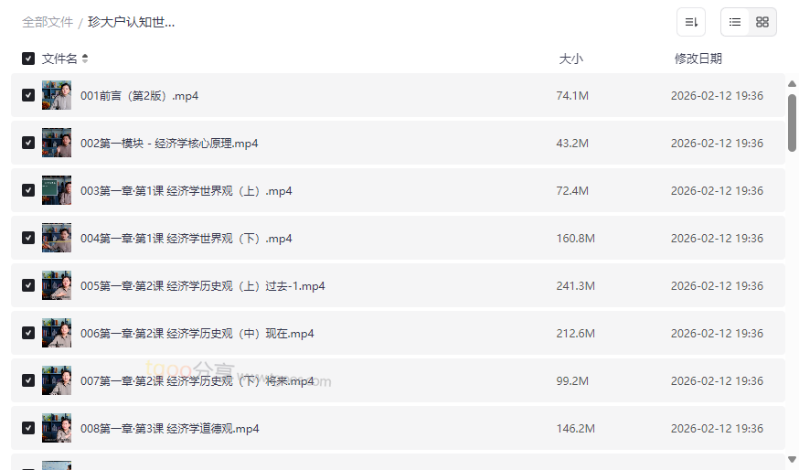 珍大户的《认知世界的经济学》是一门广受好评的经济学通识课程,它打破了传统经济学教材的枯燥框架,以独特的视角和生动的案例,将复杂的经济学原理与现实生活、商业决策、投资理财紧密相连。本资源为155节完整版视频课程,并附赠配套电子书,系统性地构建了从微观个体决策到宏观市场运行的经济学思维体系。这套高质量网盘资源不仅是知识的学习,更是一套强大的认知工具,适合: