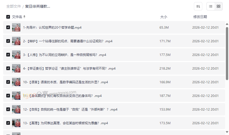资源地址:复旦徐英瑾教授《认知世界的20个哲学命题》高清课程网盘下载
