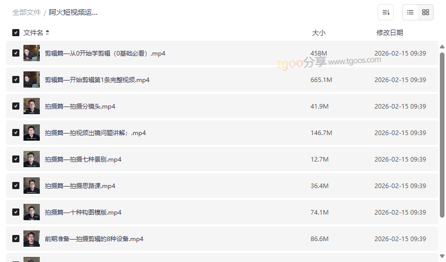 资源地址:《阿火短视频运营私教课》从0到1实战指南:拍摄剪辑运营三合一网盘资源下载