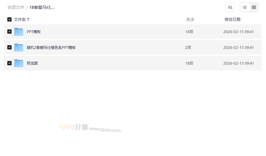 资源包附带了与每一套PPT模板一一对应的JPG格式预览图。这个贴心的设计解决了用户在网盘下载前无法预览全部内容的痛点。用户可以通过快速浏览这18张预览图,直观地比较不同模板的风格、排版和视觉复杂度,从而精准锁定最适合自己当前项目的那一套,避免下载后反复试错的麻烦。这对于追求效率的用户而言,是一个非常重要的资源筛选工具。 - 随机2套模板样例(快速体验包)