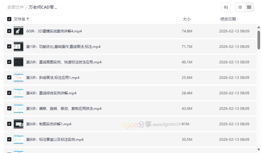 整套教程目录结构清晰,循序渐进。从简单的直线实例到复杂的综合制图,再到三维建模,形成了完整的学习闭环。亮点在于万老师的讲解逻辑严密、重点突出,每个视频都围绕一个核心技能点展开,并通过多个实例反复强化,确保学习者能够即学即用,快速积累成就感,保持学习动力。