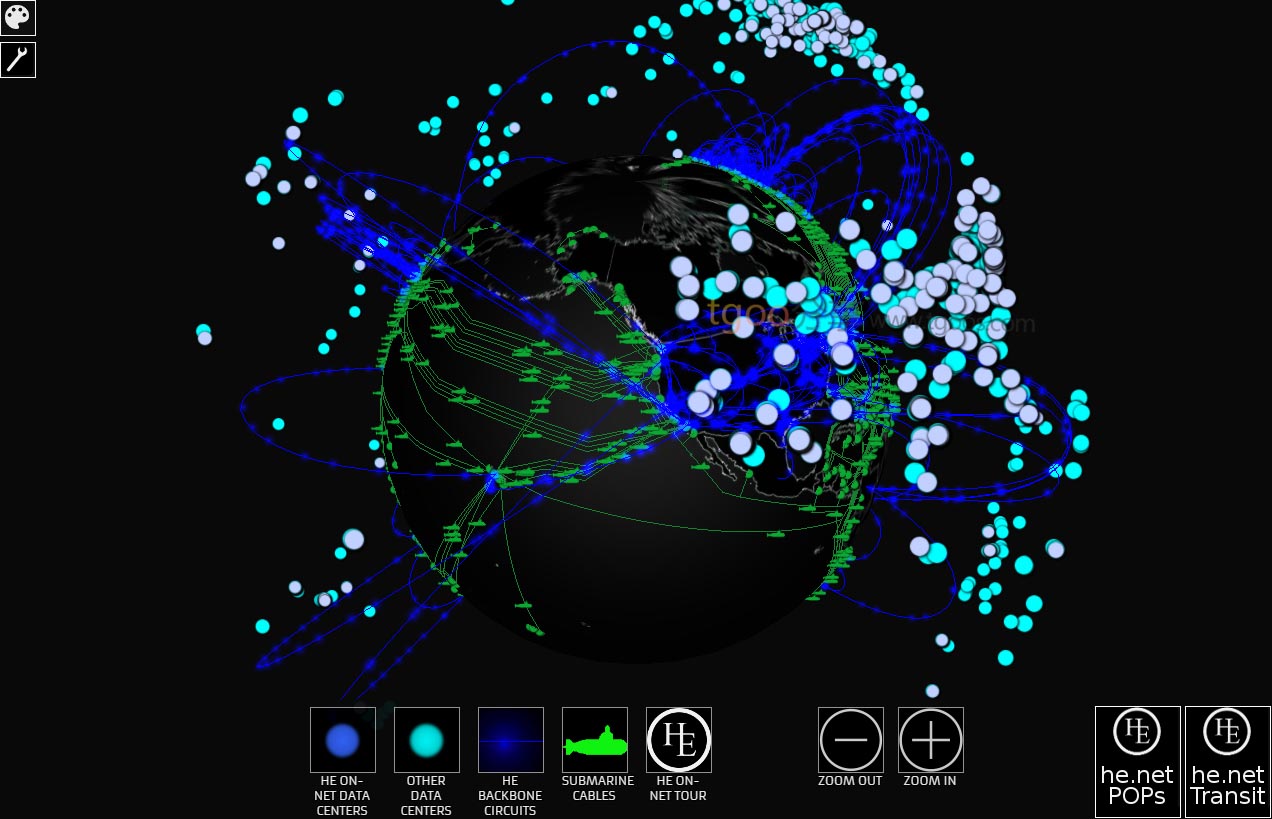 趣站地址:HE 3D Network Map-全球网络拓扑3D交互地图