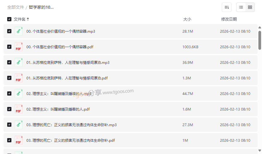 本套资源的精髓所在,每集音频围绕一个核心哲学命题展开,如“洞穴之喻”、“爱得正义”等,由主讲人进行深入浅出的解读。亮点在于其极强的场景代入感,将哲学从书斋带入生活,让你在聆听中自然完成一次思想漫步。音频格式便于利用碎片化时间学习,是通勤、运动时的绝佳精神伴侣。 - 配套PDF图文讲义(全10讲)