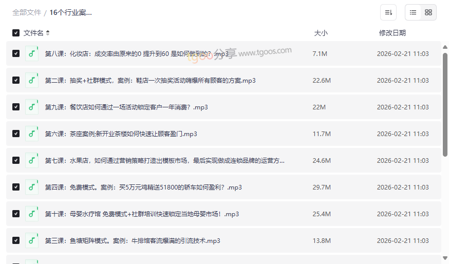 16个行业案例实体店商业模式解析音频资源截图展示
