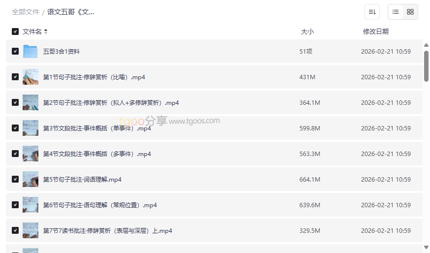 语文五哥《文学素养批注家长必修课》资源目录