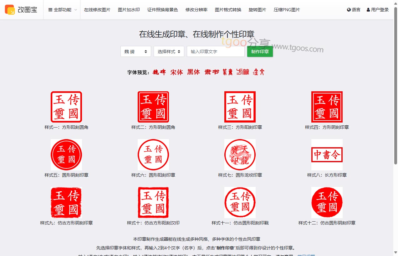 趣站地址:改图宝-在线印章制作与个性生成工具