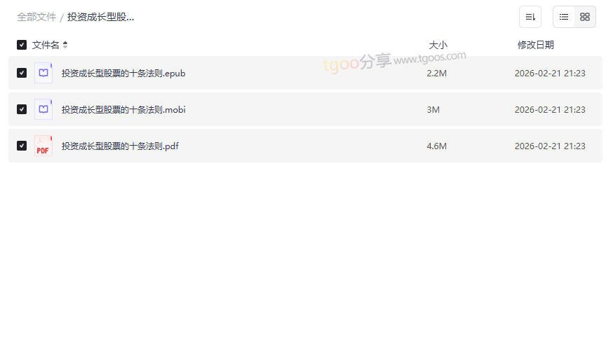 资源地址:《投资成长型股票的十条法则》EPUB/MOBI/PDF电子书全集网盘下载