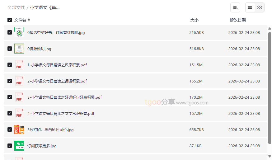 在语文学习的黄金时期,日积月累是提升核心素养的不二法门。小学语文《每日晨读积累》2025版正是这样一套专为小学生设计的系统性、模块化晨读材料。本资源集合了 汉字、词语、好句好段、文学常识 四大核心板块,以PDF电子书形式呈现,内容紧扣新课标,旨在通过每日十分钟的规律诵读,帮助孩子夯实语文基础,积累写作素材,全面提升阅读与表达能力。这套高质量网盘资源特别适合: