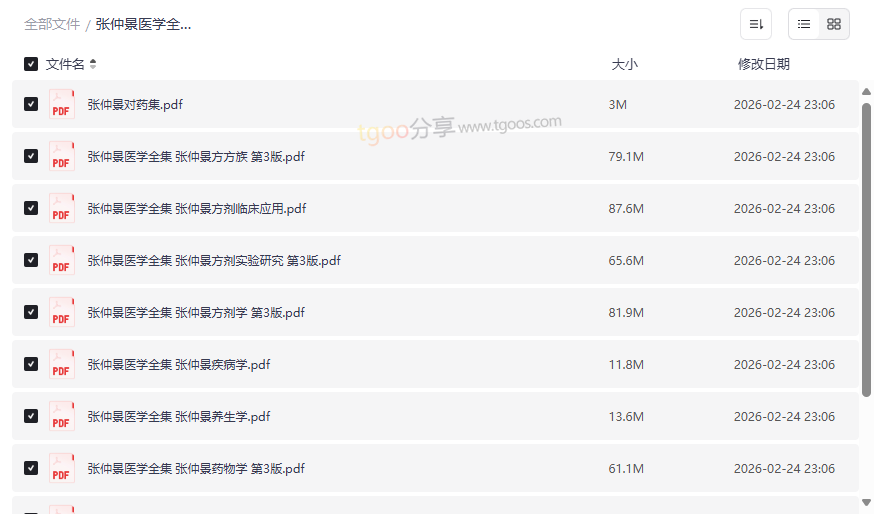 “张仲景医学全集”是系统研究“医圣”张仲景学术思想与临床应用的权威著作合集。本资源集合了 《伤寒杂病论》方剂学、药物学、诊断学、疾病学、养生学、实验研究及临床应用 等多维度核心内容,将千年经典理论与现代医学研究深度结合,是学习和传承中医精髓的宝贵资料库。这套资源适合:
