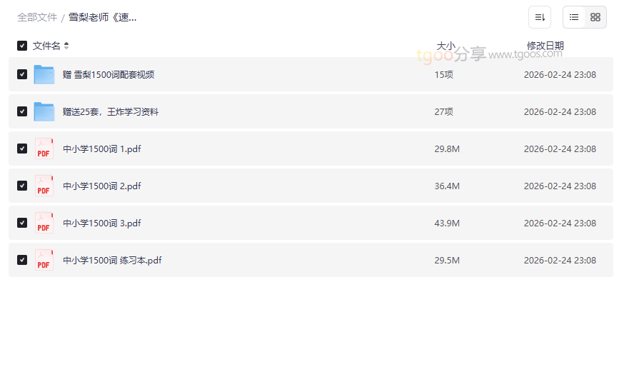 雪梨老师《速记中小学1500词》资源目录