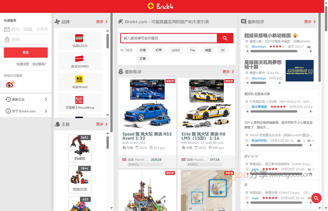 Brick4.com是一个专注于国产积木索引与信息汇总的实用工具平台,提供全面的积木套组资料库与价格查询服务,帮助积木爱好者、收藏者与玩家快速查阅国产积木套组信息、对比价格与了解绝版复刻动态。该站点致力于整理“乐高式积木”相关资料,覆盖乐高幻影忍者、乐高街景、乐高大电影等热门系列,以及得高积木、宇星模王、澄海积木、博乐积木等主流国产积木品牌。平台支持按品牌、系列、年份等多维度检索,提供国产积木报价、绝版乐高盘点与国产积木MOC(My Own Creation)资源参考,帮助用户解决“国产乐高类积木有哪些”“哪个国产乐高类积木品牌好”等选购难题。据公开信息,站点内容由社区维护更新,访问无需科学上网,适合国内玩家日常查询与深度研究使用。